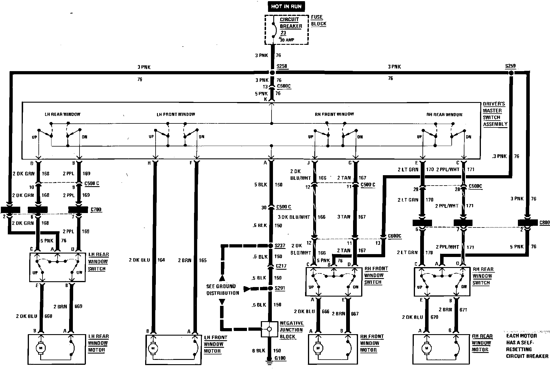 Power Windows Wiring Circuit. 4 Door: