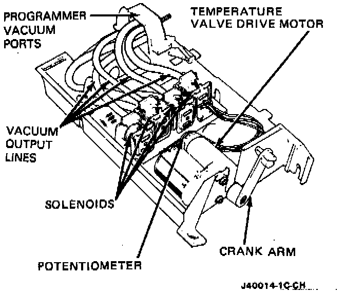 Vacuum is constantly applied to a programmer check valve which distributes the vacuum to four solenoid-controlled valves. When the A/C control assembly signals the programmer to change an air distributor valve, the associated solenoid is energized and vacuum is applied to a vacuum-motor actuator. The actuator, in turn, repositions its air distributor valve.