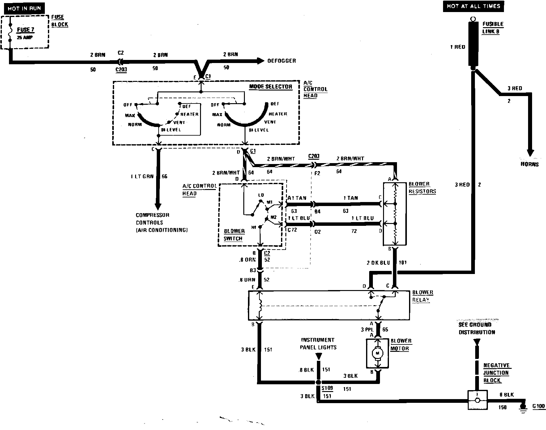 Air Conditioning Blower Controls Wiring Circuit (W/Manual A/C):