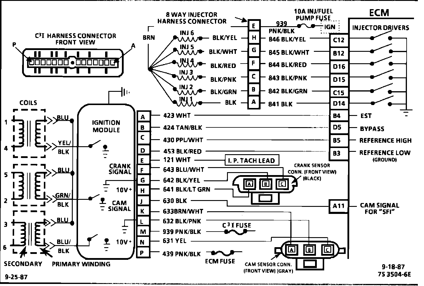 Circuit Description: 1986-1987 3.8L (VIN 3 & B) The C(3)I uses a waste spark method of spark distribution. In this type of ignition system the ignition module triggers the #1/4 coil pair resulting in both #1 and #4 spark plugs firing at the same time. #1 cylinder is on the compression stroke at the same time #4 is on the exhaust stroke, resulting in a lower energy requirement to fire #4 spark plug. This leaves the remaining high voltage to fire #1 spark plug.