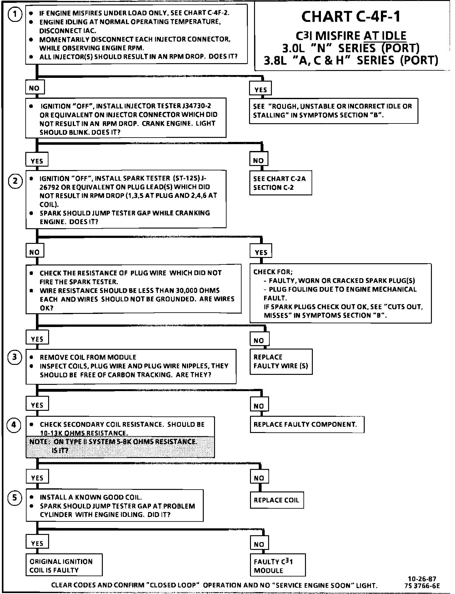 CHART C-4F-1C(3)I MISFIRE AT IDLE 3.0L "N" SERIES (PORT) 3.8L "A, C & H" SERIES (PORT):