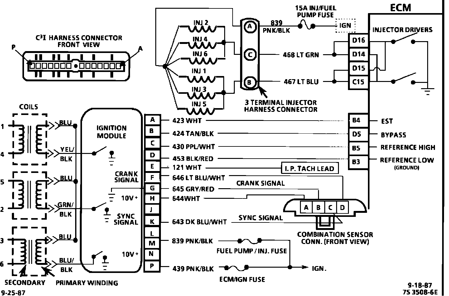 Circuit Description: 1986-1987 3.0L (VIN L) The C(3)I uses a waste spark method of spark distribution. In this type of ignition system the ignition module triggers the #1/4 coil pair resulting in both #1 and #4 spark plugs firing at the same time. #1 cylinder is on the compression stroke at the same time #4 is on the exhaust stroke, resulting in a lower energy requirement to fire #4 spark plug. This leaves the remaining high voltage to fire #1 spark plug.