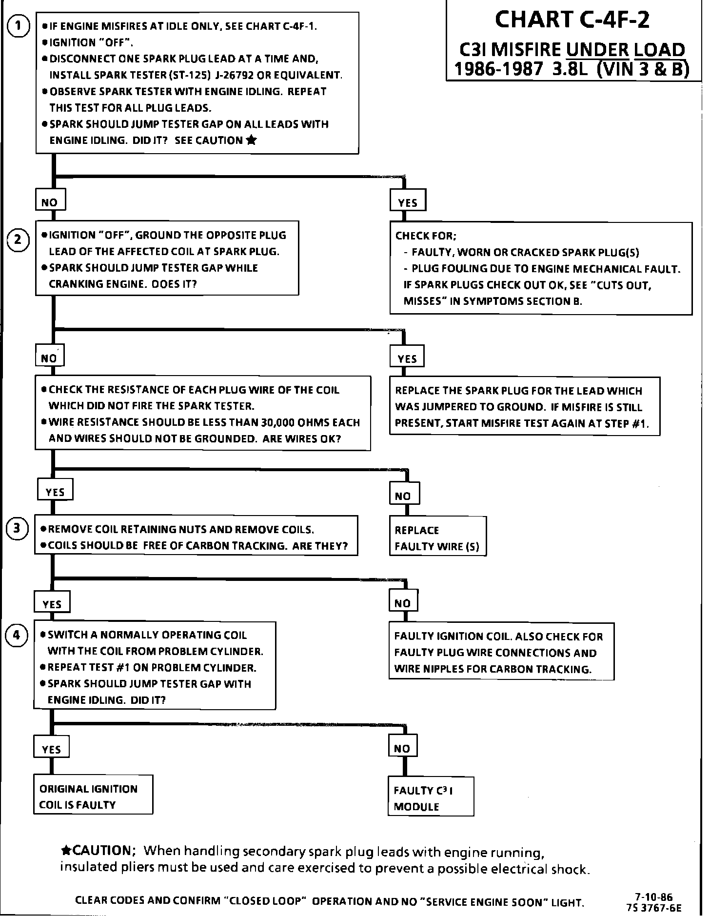 CHART C-4F-2C(3)I MISFIRE UNDER LOAD 1986-1987 3.8L (VIN 3 & B):