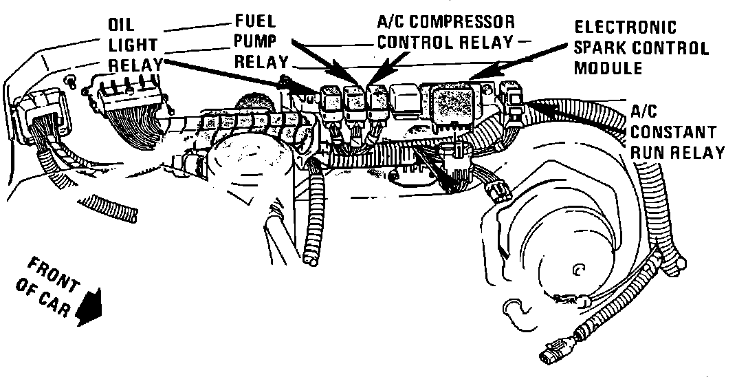 The Fuel Pump Relay is located on the center front of dash, on bracket