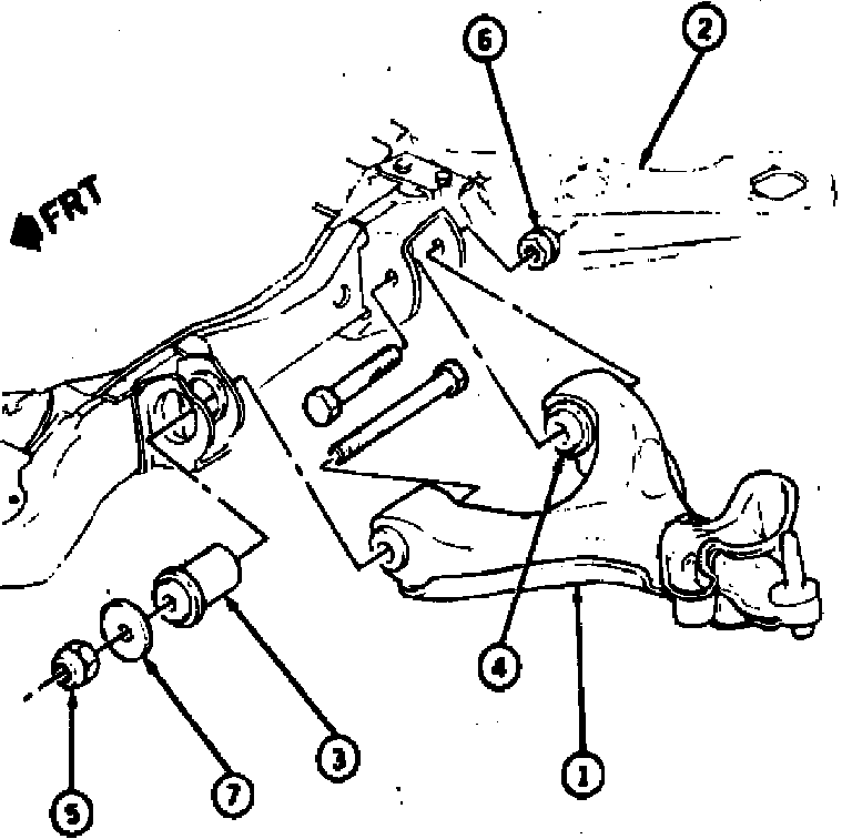 5. Remove stabilizer bar bushing to control arm bolt.