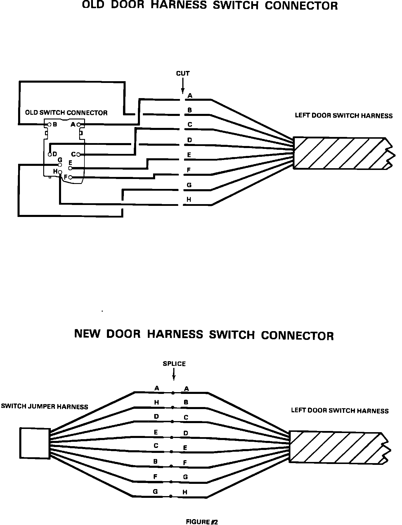 5. Replace the door harness switch connector with the new switch jumper harness by using the following directions.