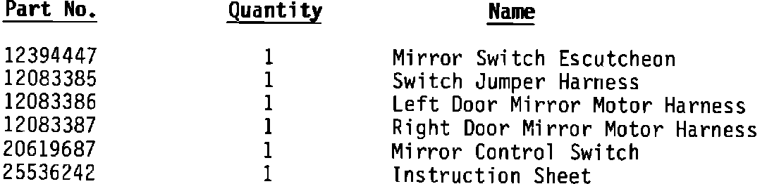 REPLACING THE CHERRY "TOUCHPAD" POWER MIRROR CONTROL SWITCH WITH THE MICRO CRAFT "JOYSTICK" POWER MIRROR CONTROL SWITCH USING THE SWITCH SERVICE KIT (PART NUMBER 25535943)