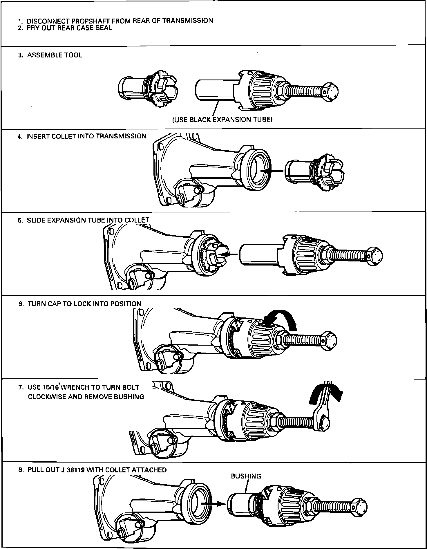 SUBJECT: NEW ON-VEHICLE SERVICE PROCEDURE - REMOVE REAR CASE BUSHING OR REAR EXTENSION BUSHING