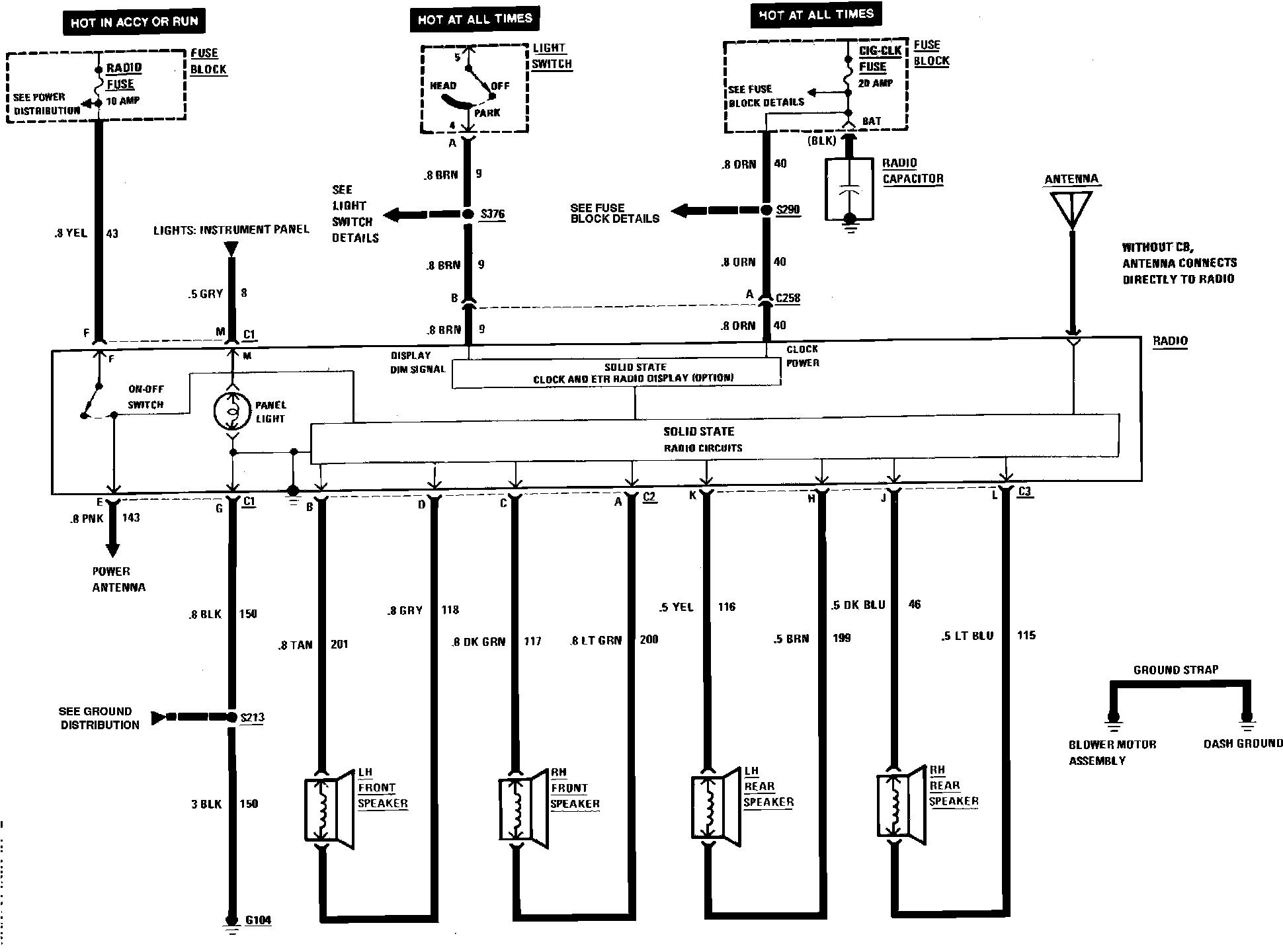 Radio Wiring Circuit (With Stereo System (Four Speakers)):