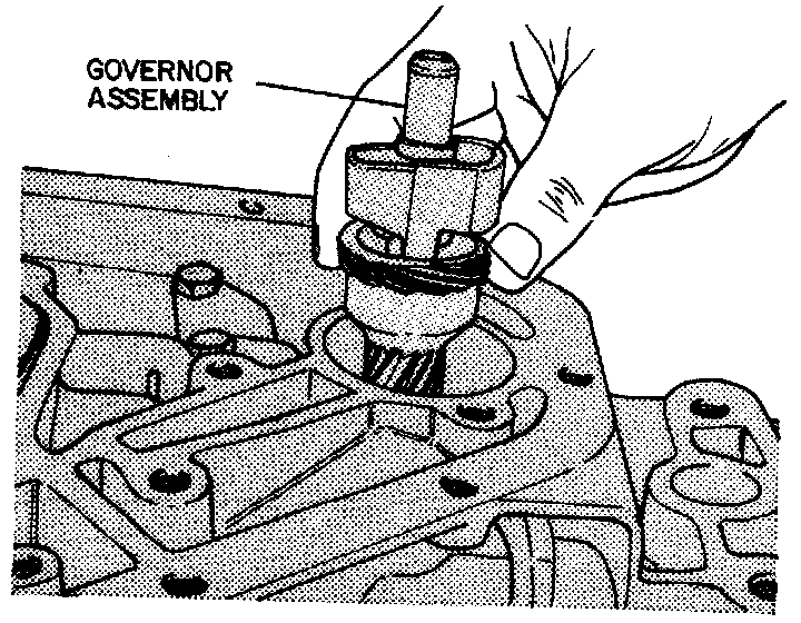 15. Remove governor assembly from transmission case. If necessary, rotate output shaft counterclockwise to remove governor. Do not use any type of pliers to remove governor assembly from transmission case.