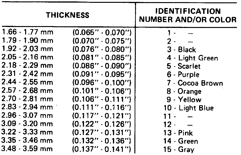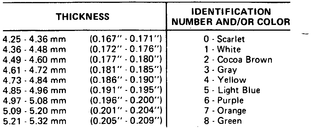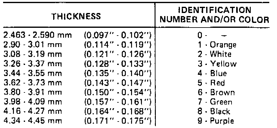 21. Using a torque wrench, apply 100 inch lbs (12 Nm) torque to hex nut on side of gauge and slide dial indicator over pin tool No. J25014-1. Check dial indicator reading and refer to chart. Dial indicator travel is reversed, making the readings backward. On an indicator which ranges from 0-100, a 0.020 inch (0.5 mm) travel will read 0.080 inch (2 mm), a 0.060 inch (1.5 mm travel will read 0.040 inch (1 mm. The identification groove is located on band end of pin.