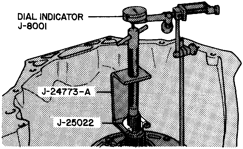 d. Remove dial indicator and clamp assembly. Do not remove tools No. J25013 and J29332.