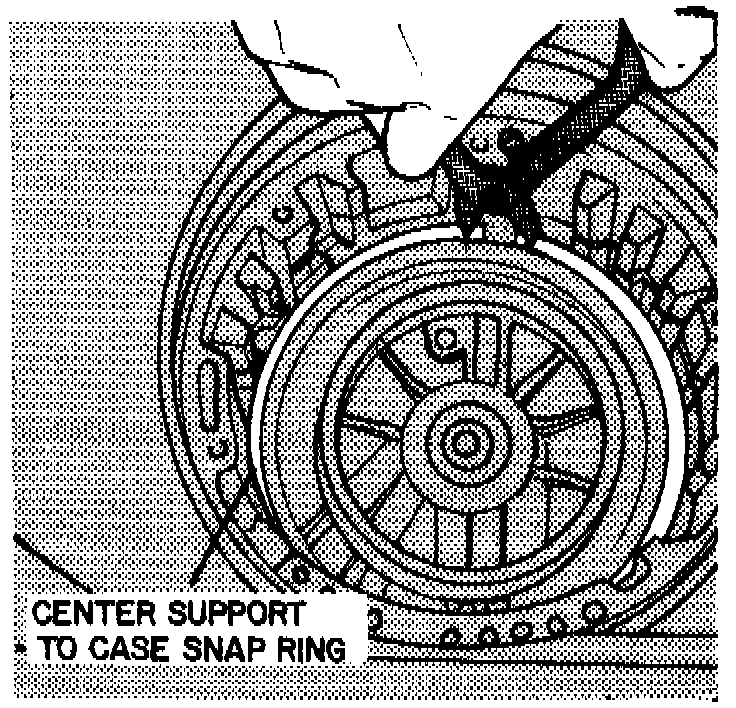 37. Remove center support snap ring, from transmission case.