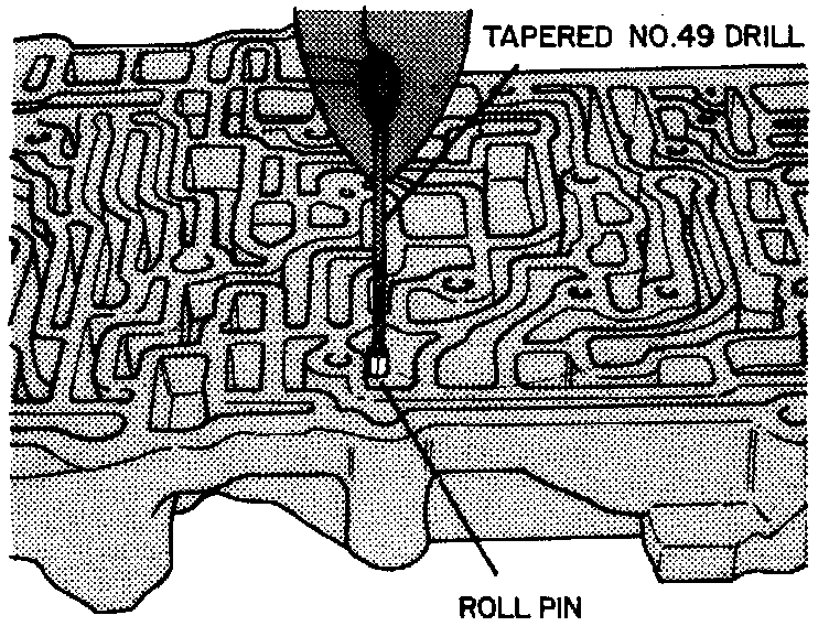 b. Lightly tap tapered end of drill bit into roll pin and remove drill bit and roll pin.