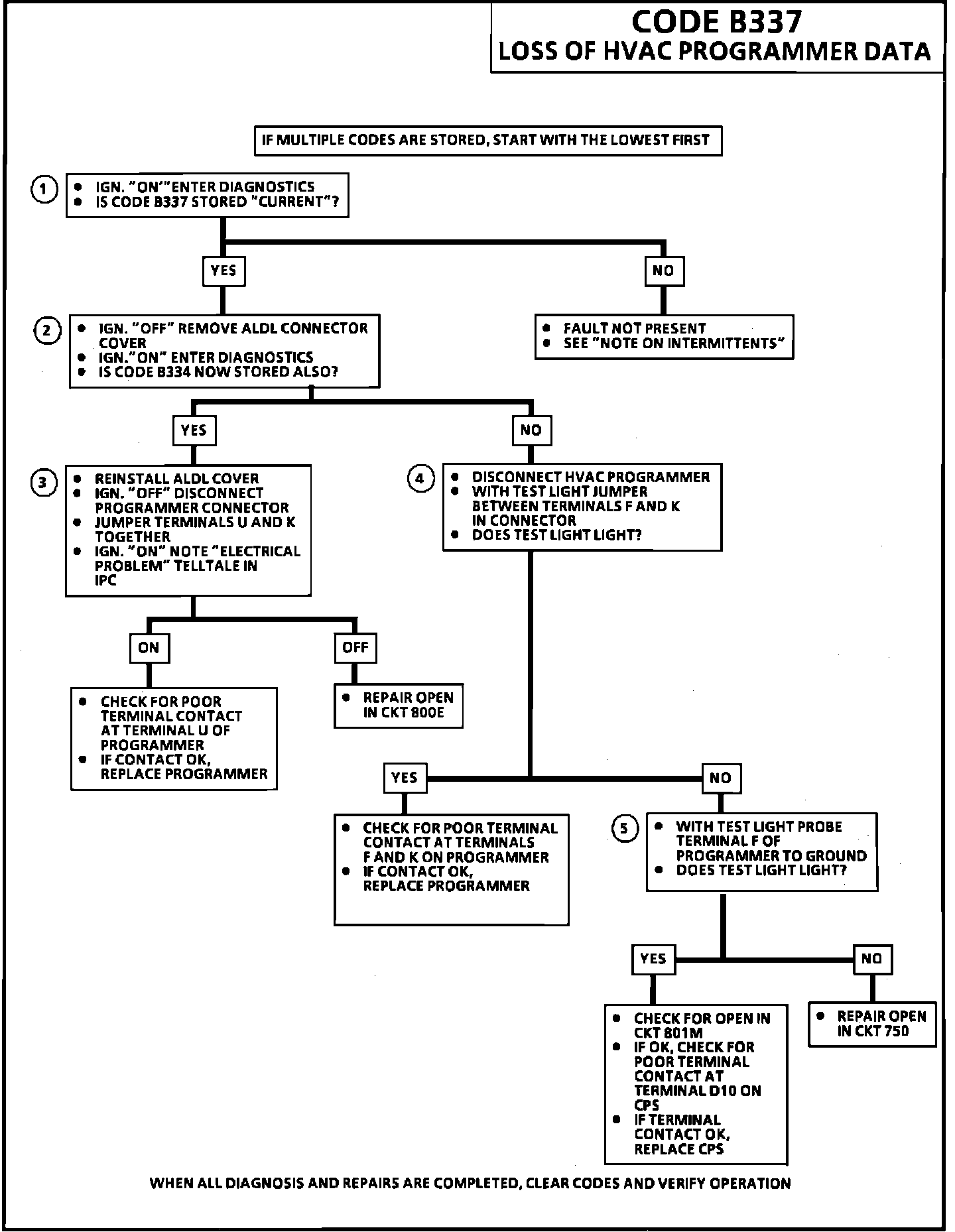Wiring Diagram for Codes B334, B335, B336 & B337: