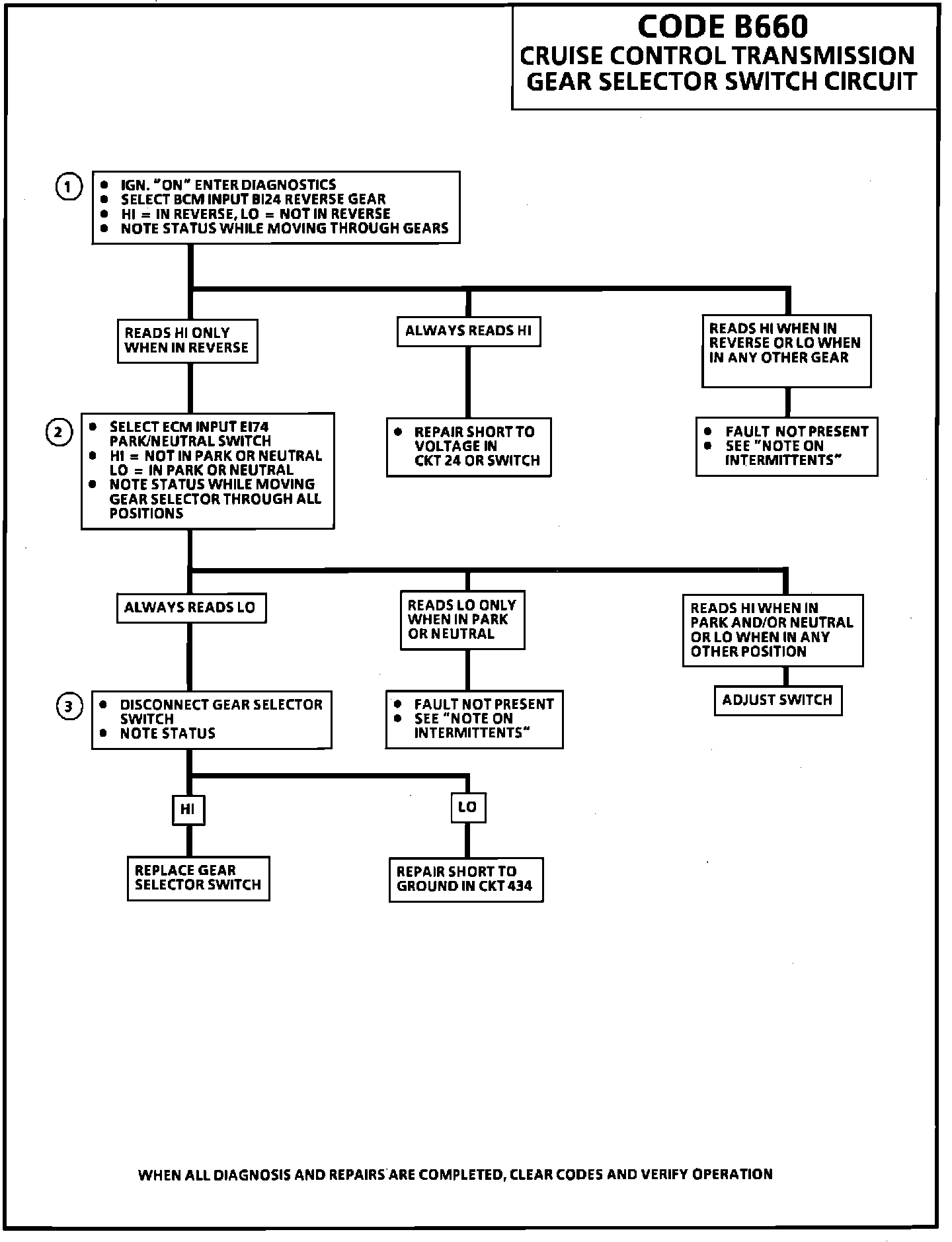 CODE B660 - CRUISE CONTROL - TRANS. GEAR SELECTOR SWITCH CIRCUIT