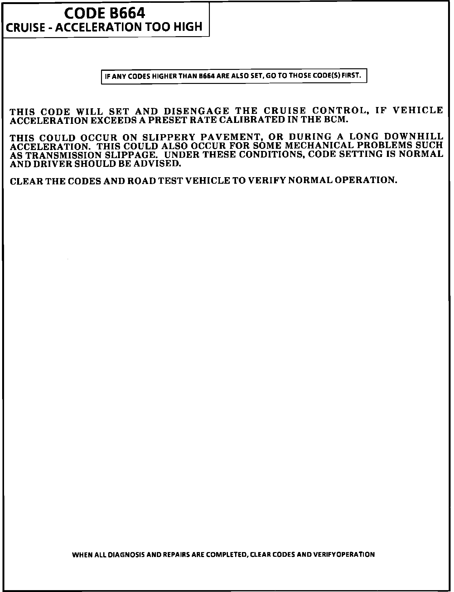 Code B664 - Cruise - Acceleration Too High: