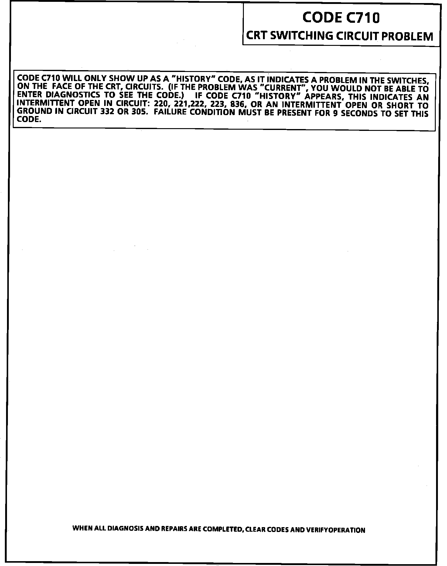 CODE C710 - CRT SWITCHING CIRCUIT PROBLEM