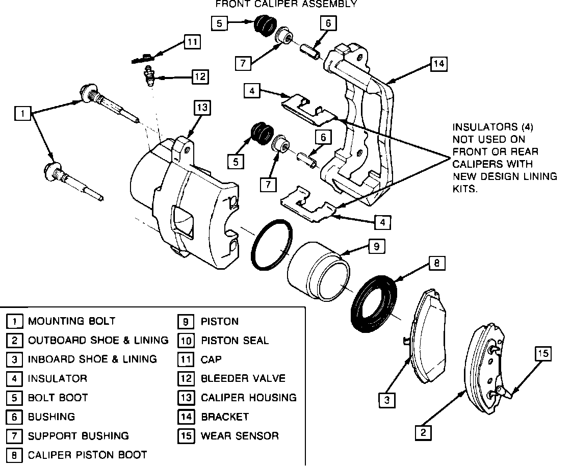 The length of the shoe in these kits has been increased so that the stainless steel shoe abutment insulators, shown in Figure 2, are no longer required. When installing the new lining kits, discard the shoe abutment insulators. An instruction sheet is included with all new lining kits. Refer to the appropriate Service Information Manual, Sections 5B3 and 5B7, for installation procedures.
