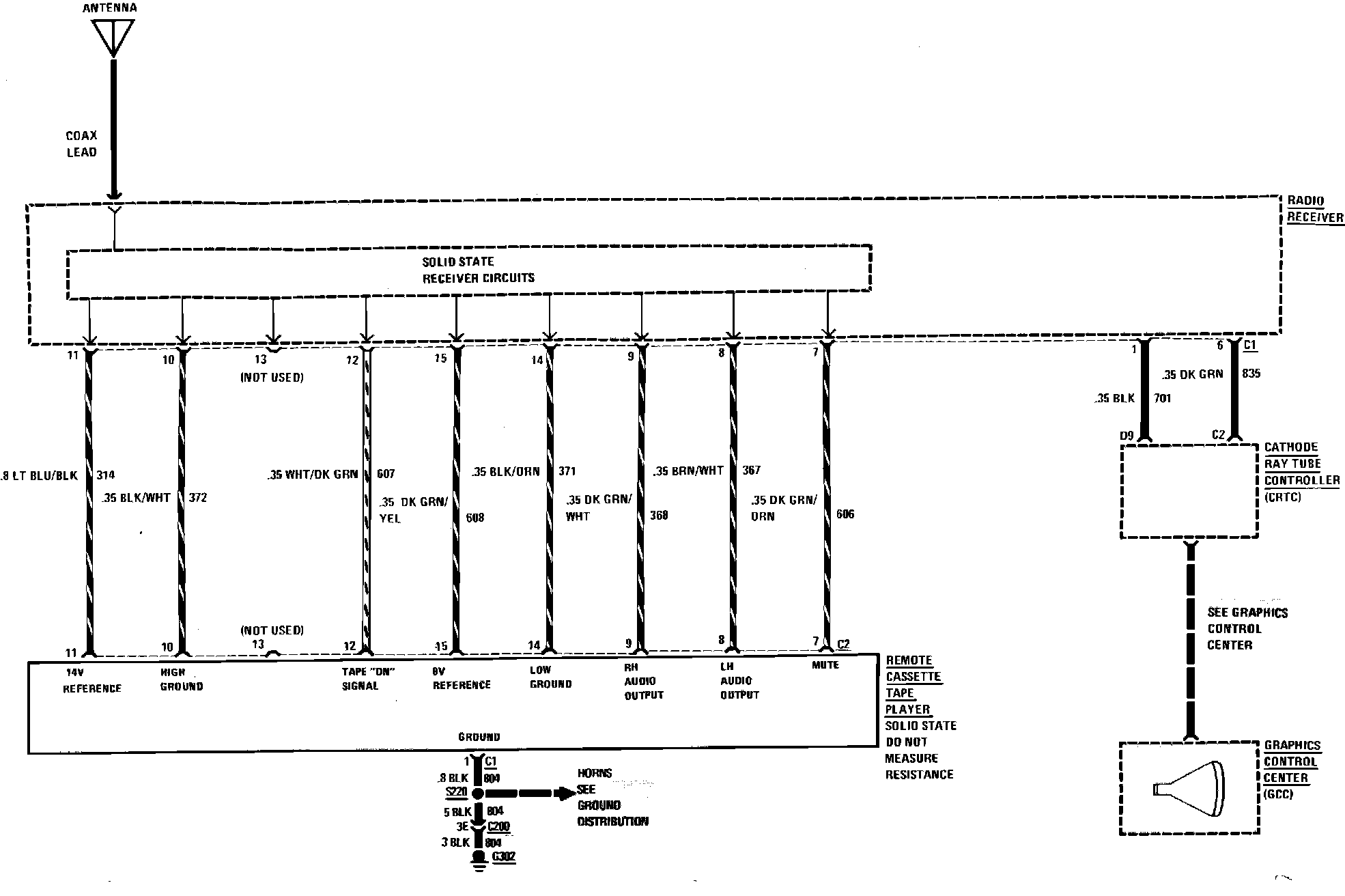 Radio Wiring Circuit. W/Remote Cassette Tape Player: