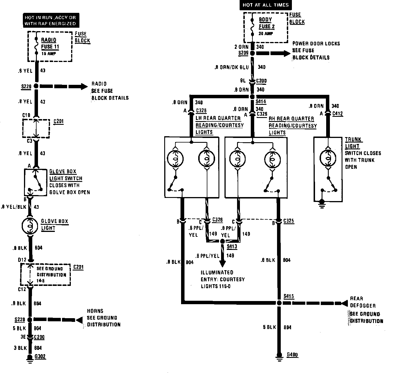 Interior Lights Wiring Circuit (Rear Quarter, Trunk & Glove Box):