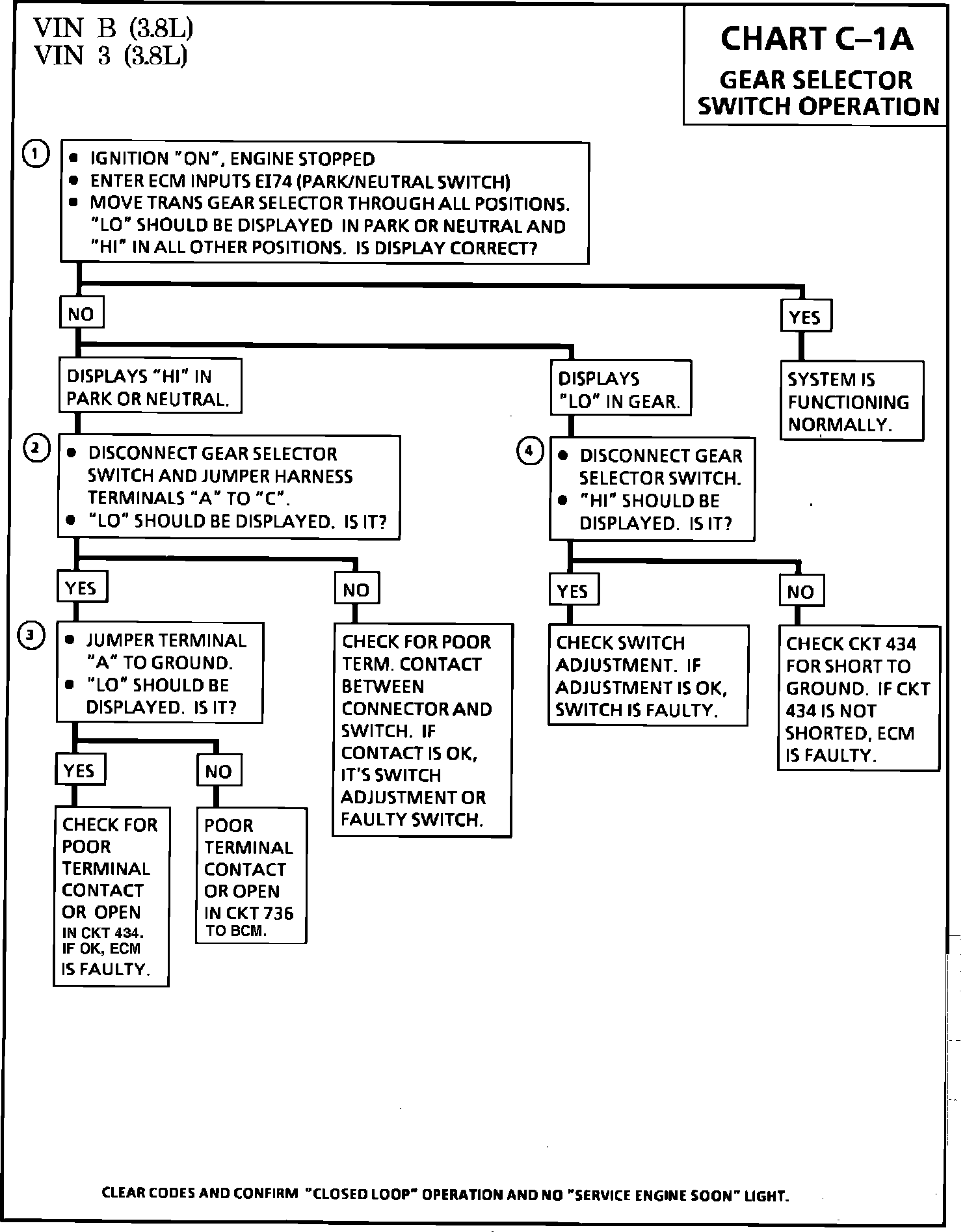 Wiring Diagram for Chart C-1A - Gear Selector Switch Operation: