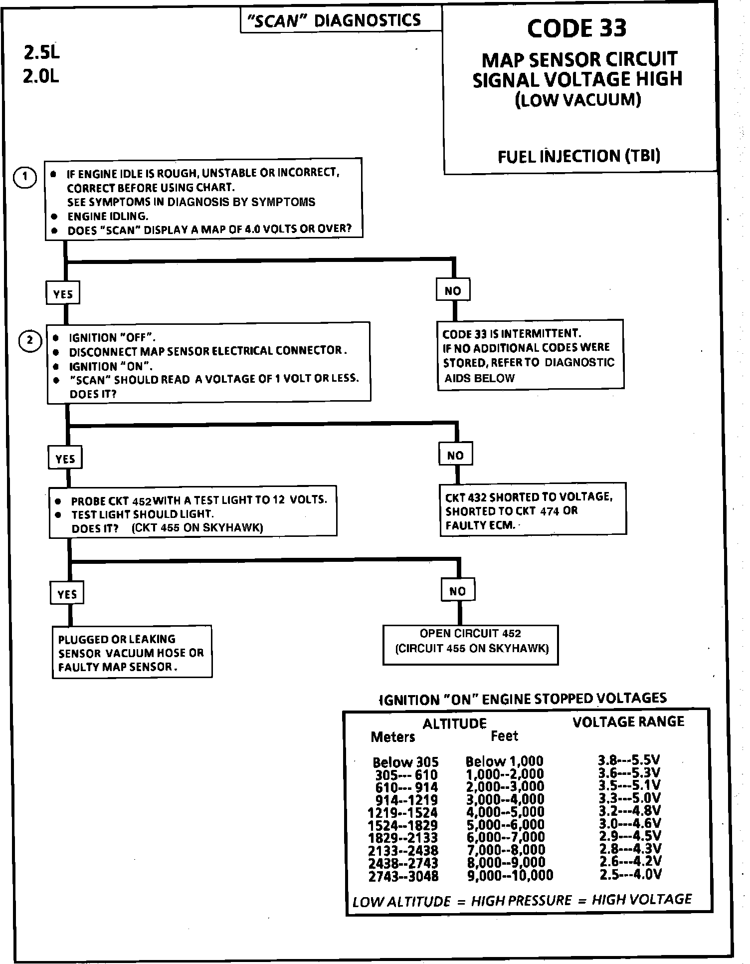 A Code 33 will result if CKT 452 is open, or if CKT 432 is shorted to voltage or to CKT 474.