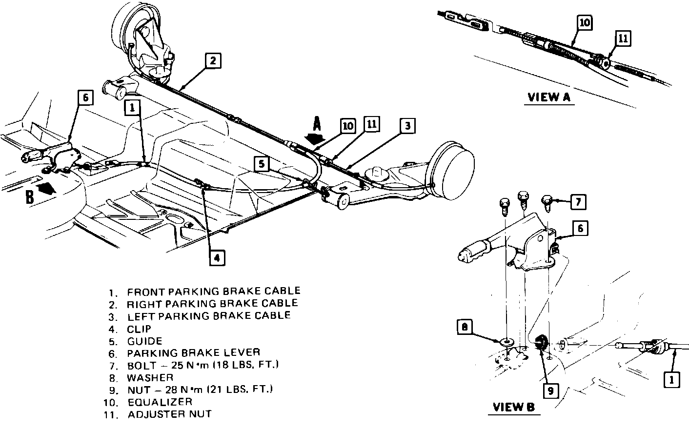 12. Install new parking brake lever assembly and tighten attaching bolts to 25 N-m (18 ft.lbs.).