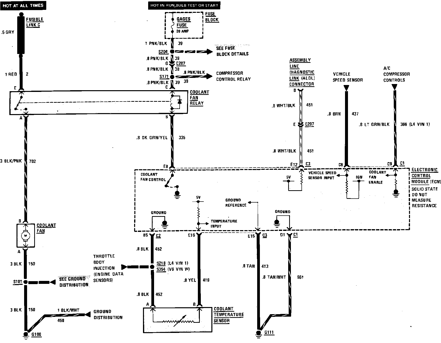 Fig. 47 Coolant Fan Wiring Circuit W/4-121/2.0L VIN 1 Engine: