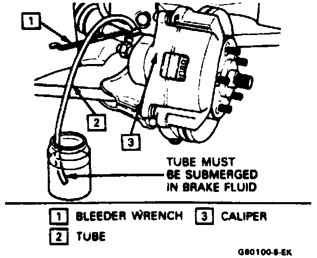 7. Place a proper size box end wrench over the bleeder valve. Allow fluid to flow until no air is seen in the fluid.