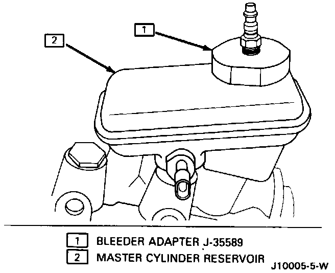 1. Install brake bleeder adapter J-35589 to the master cylinder.