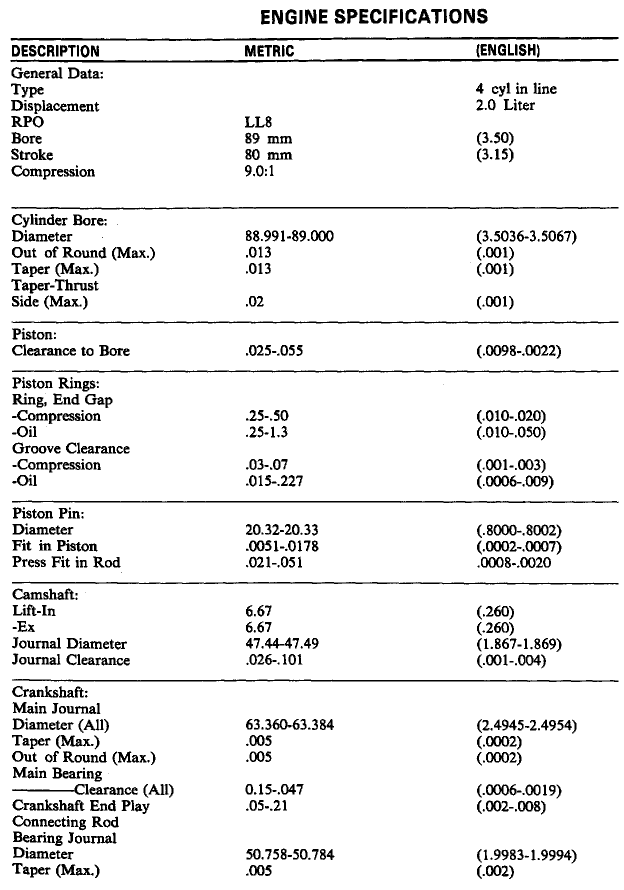 Engine Specifications: