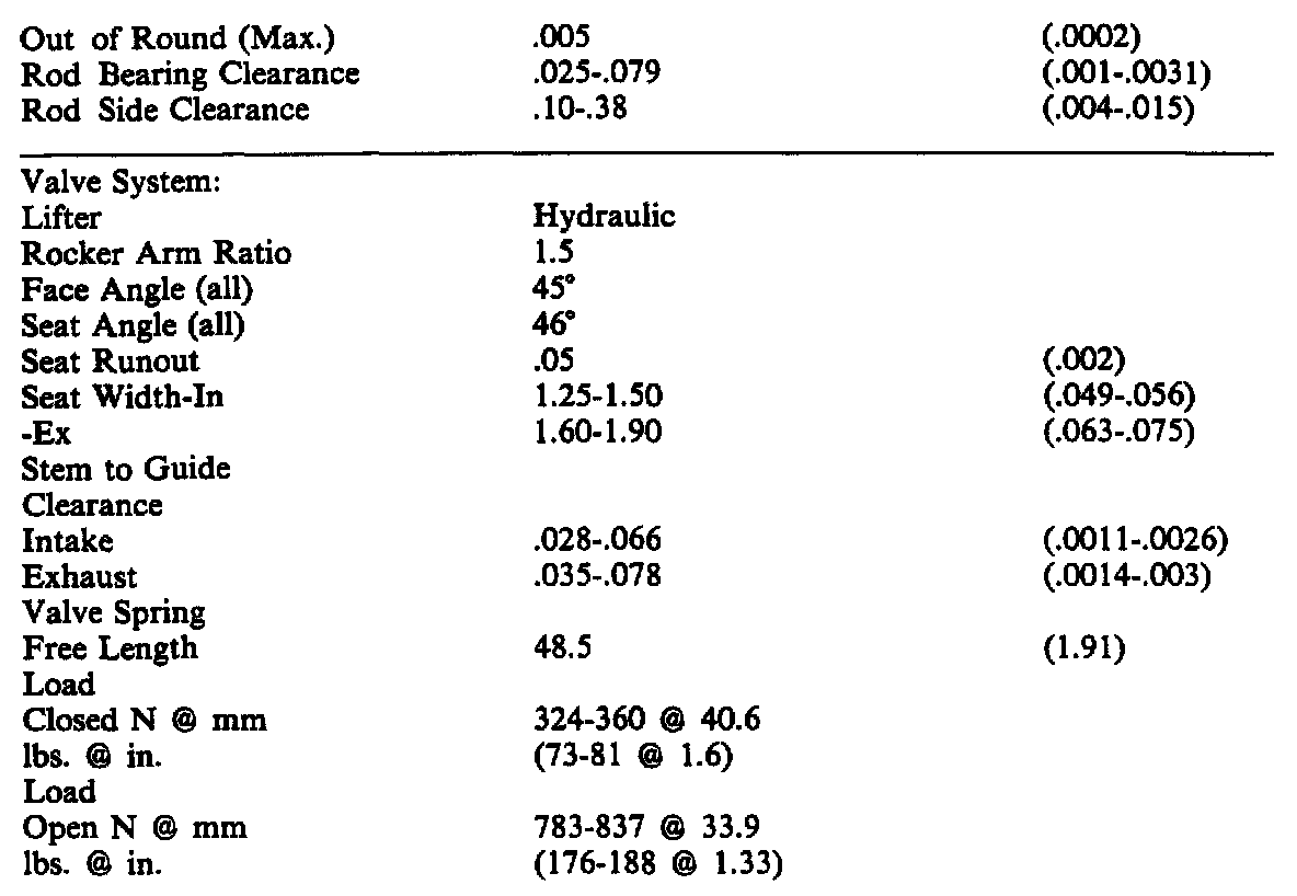 Continued Engine Specifications:
