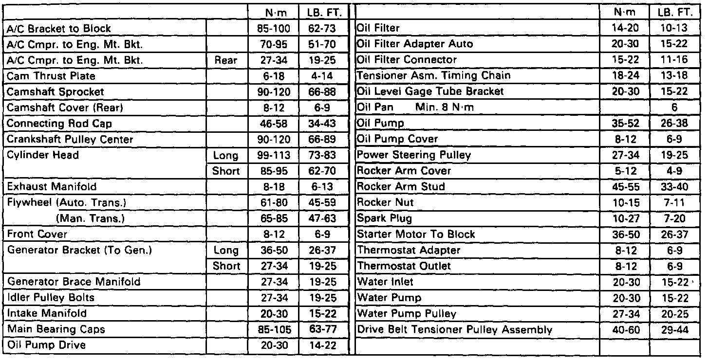 Torque Specifications: