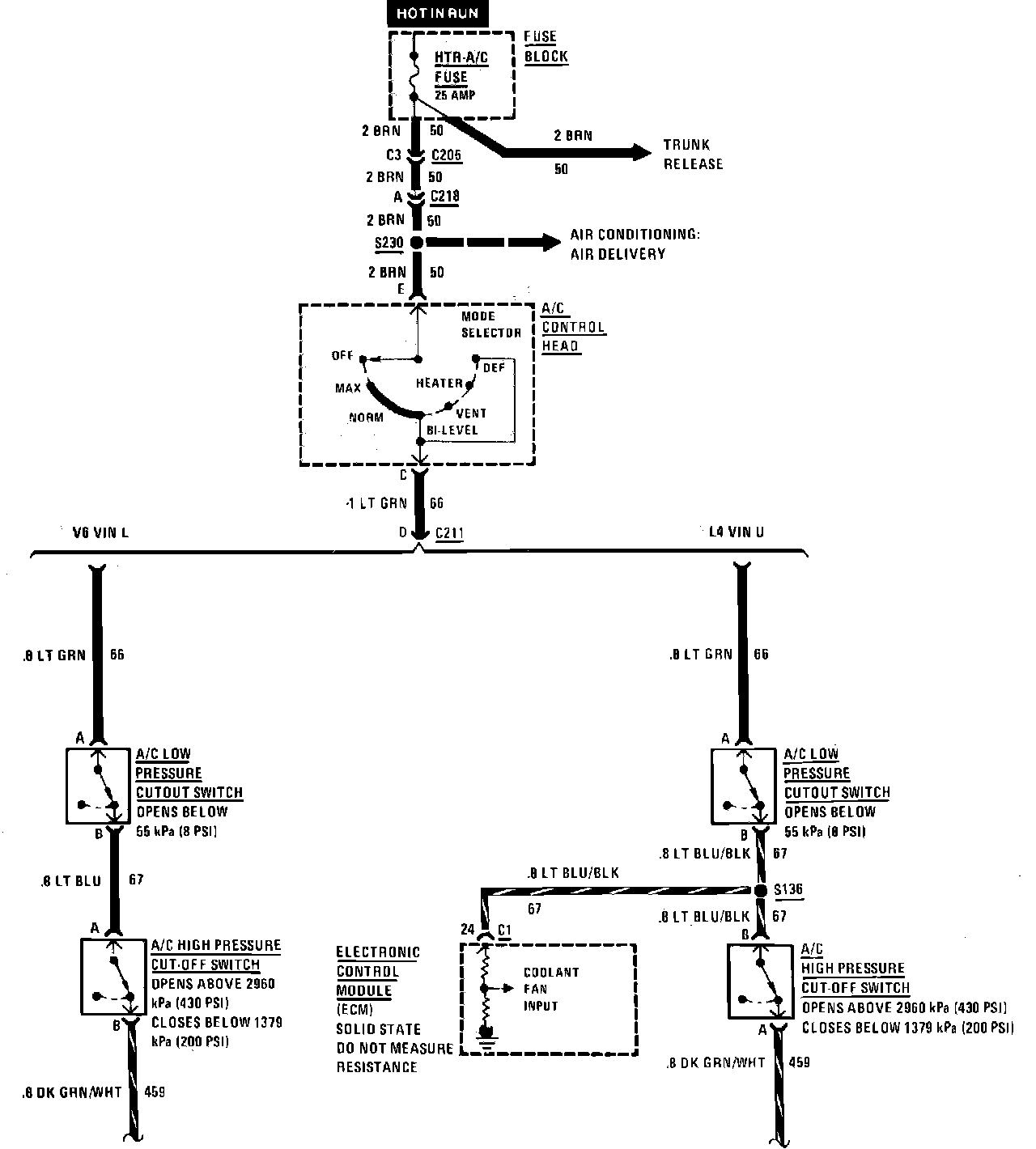 A/C Compressor Control Wiring Circuit: