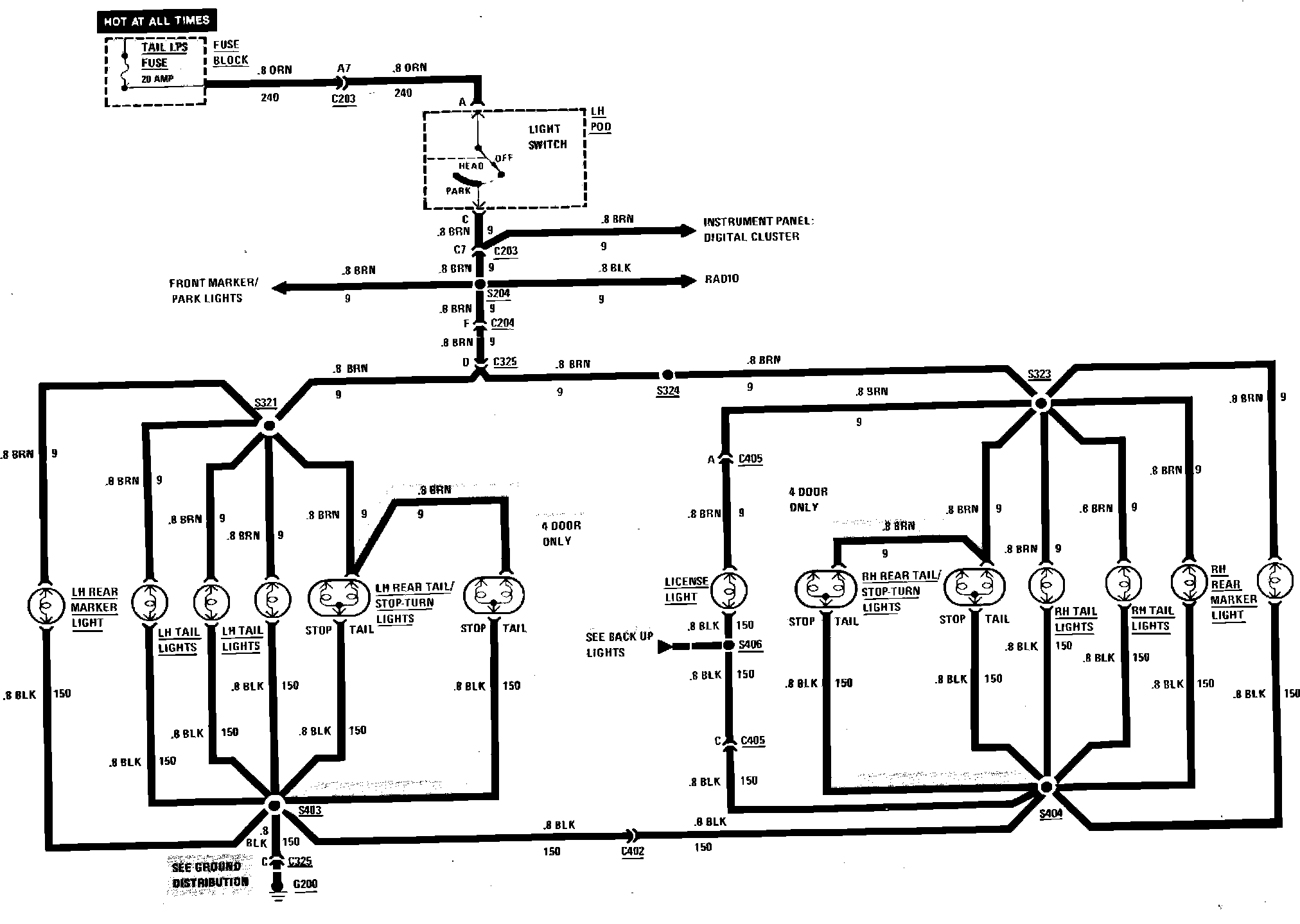 Exterior Lamps Wiring Circuit (License, Rear Marker & Tail Lamps):