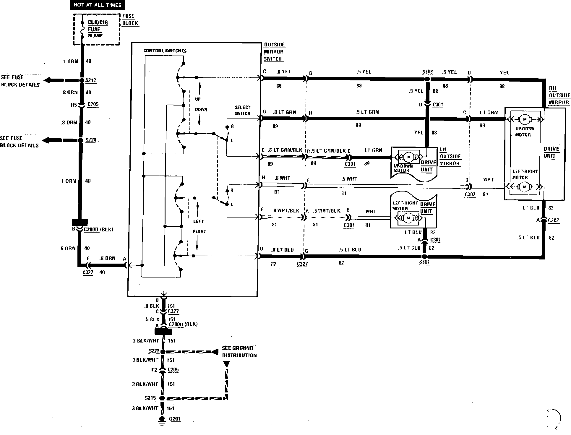 Power Mirror Wiring Circuit: