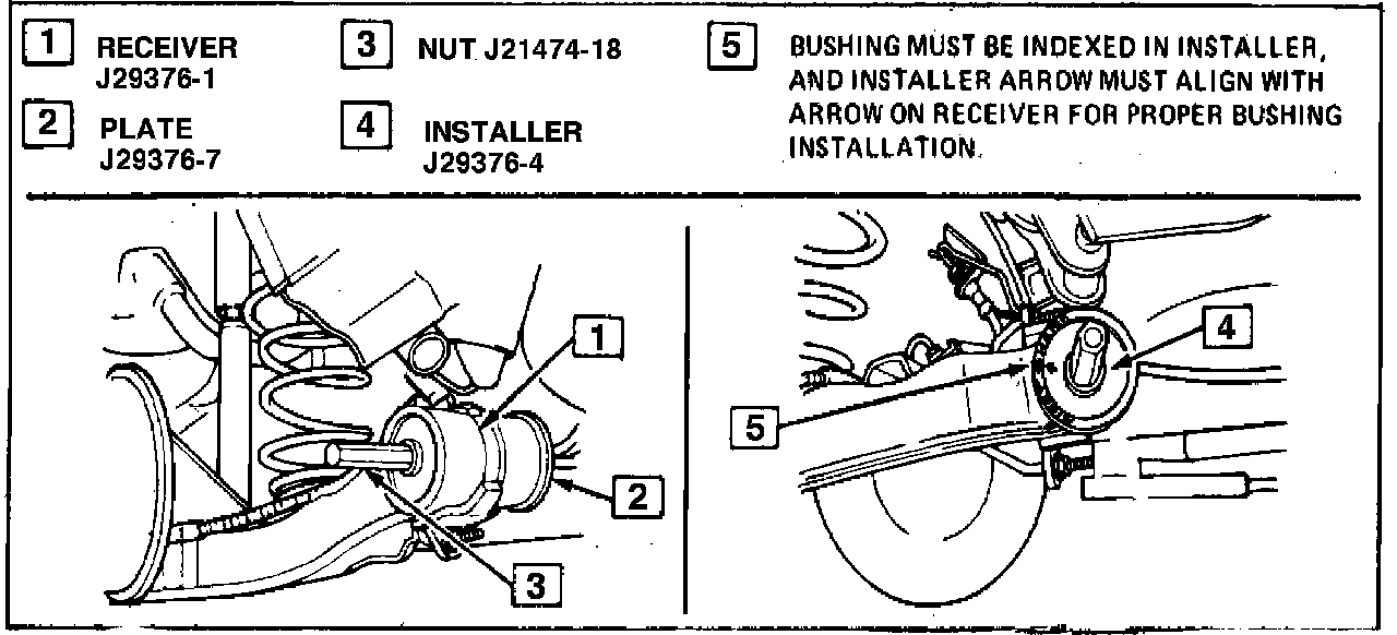 5. The bushing can now be replaced using tools shown in Figs. 5 and 6. When installing bushing, the arrow on the installer must align with arrow on the receiver, Fig. 5.