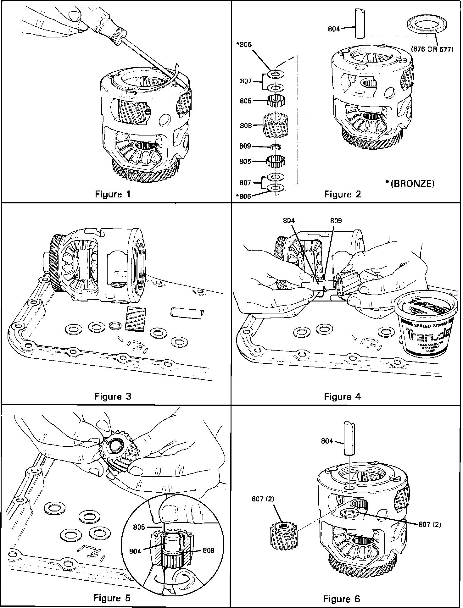 3. Be careful when pulling out the pinion gear shaft (804) from the pinion gear so the needle bearings do not get lost. (Figure 2) Put a mark on the gear with chalk or crayon so the gear can be installed the same way it was removed. Overhaul one pinion at a time so parts do not get mixed.