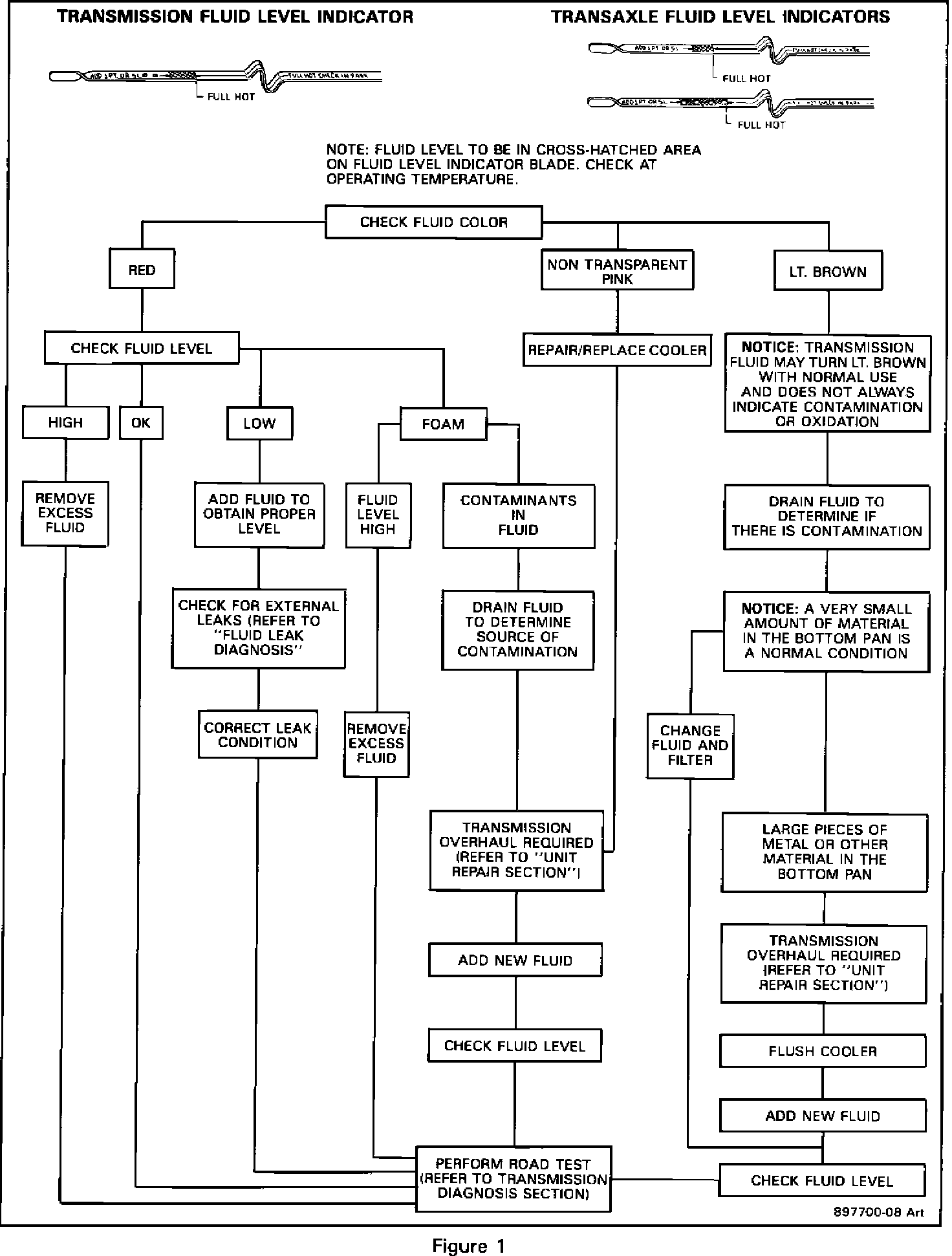 Service Manual update for Transmission/Transaxle fluid level and condition information. This information is updated for 1989 service manuals printed prior to June 1989.