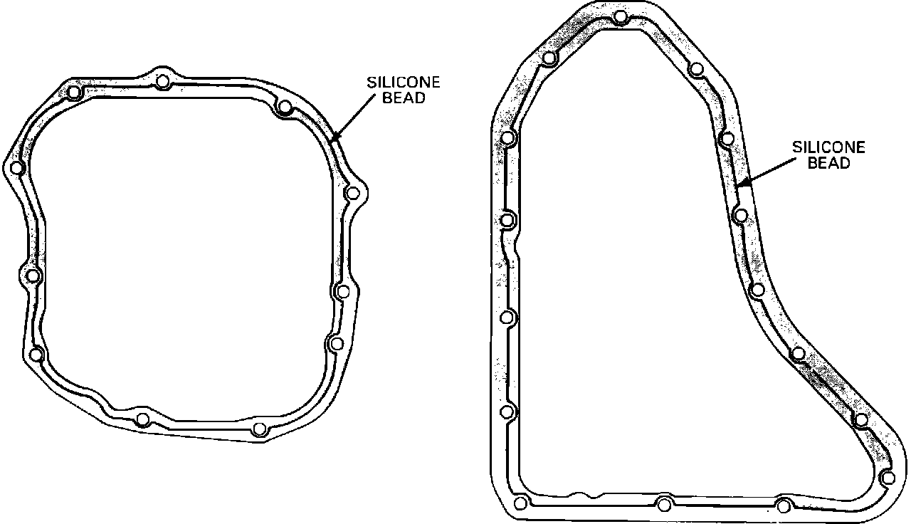 A new Side Cover gasket and Bottom Pan gasket for all Hydra-Matic 3T40 (THM 125C) transaxles, which reduces the potential for Side Cover and/or Bottom Pan leaks. These new gaskets are light gray in color and can be identified by a Silicone Bead which is dark orange in color. (Figure 1)