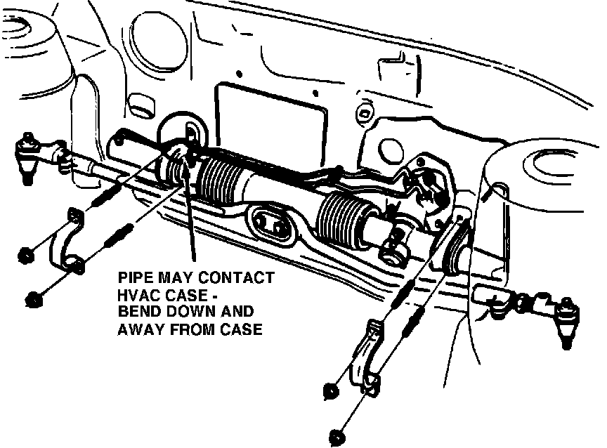 These types of noises may be caused by one of the power steering cylinder lines contacting the HVAC case (refer to Figure 1).