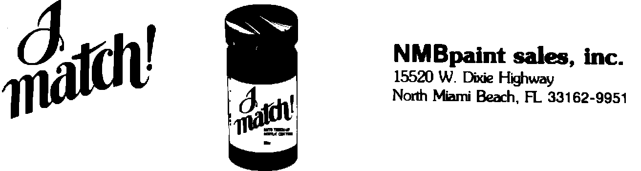 A new product is being marketed by NMB Paint Sales, Inc., which will effectively match existing paint colors and touch up nicks and scratches on vehicles finished with acrylic paint.