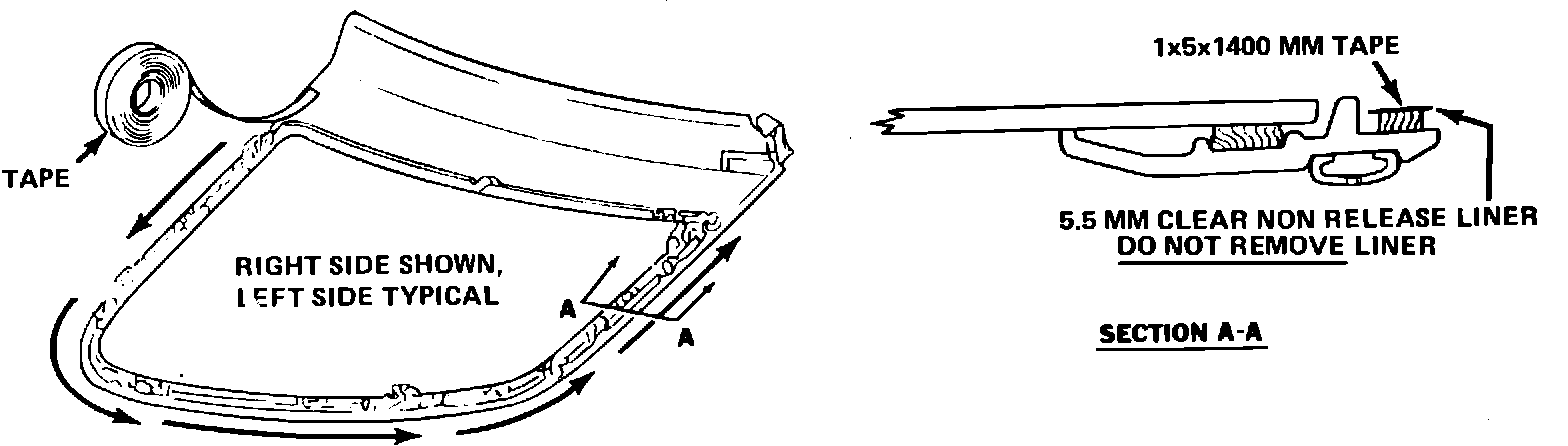 2. Apply tape, Part Number 12393610, to the inside surface of the outer flange of the window module for the entire periphery of the module and cut off the excess.