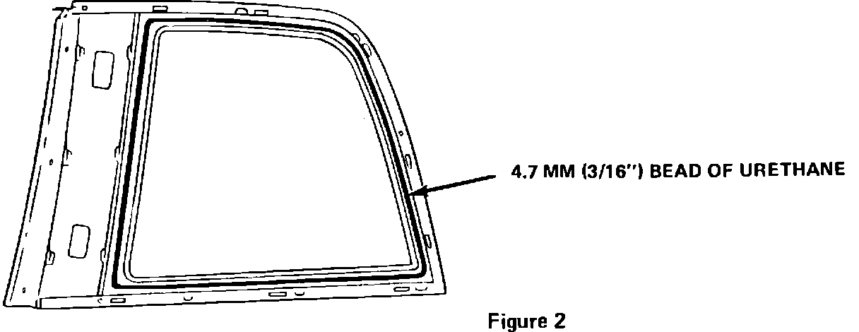 3. Apply a 4.8 mm (3/16") bead of urethane as shown (Figure 2).