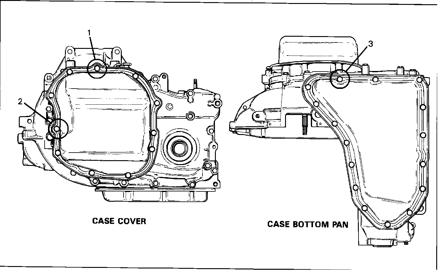 Whenever the side cover or bottom pan has been removed on any THM125/125C it is necessary to use LOCTITE 242 (or equivalent) to reduce the potential for leaks on the following bolts: (Refer to Figure 1)