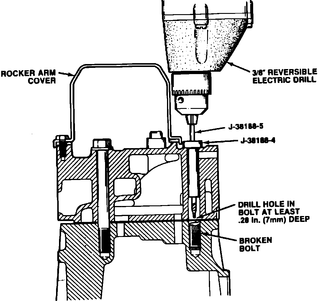 The portion of the unbroken bolt remaining in the cylinder block may be extracted without removing the cylinder head. The procedure for extracting any broken head bolt is as follows: