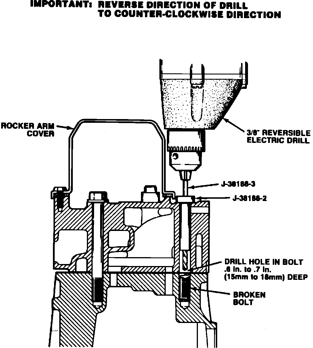 IMPORTANT: Tool J-38188-3 is a left-hand twist drill. It is critical that the rotation of the electric drill be reversed prior to using the drill. Rotation of the drill should be counterclockwise.