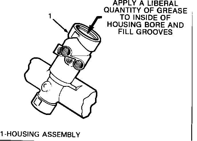 Apply a liberal quantity of grease to the valve housing bore. Be sure to fill grooves with grease. This will ease reassembly of valve into housing.