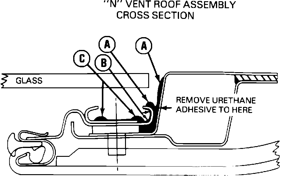 Condition "C" is due to improper bond of the module to the roof panel due to voids in the urethane adhesive.